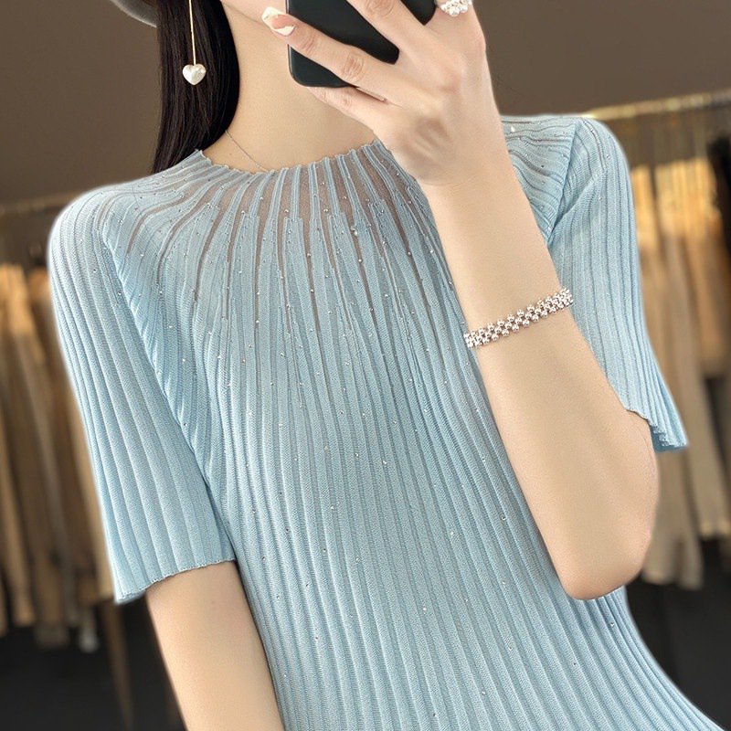 เสื้อบอททอมผู้หญิง ตัดต่อผ้ามุ้ง แต่งผ้า เนื้อผ้าซีทรู