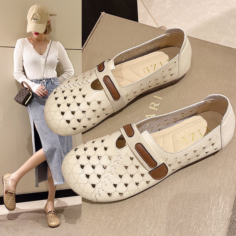 [แบบสวม] รองเท้าคัทชูแบบฉลุ หนังนิ่ม สไตล์วินเทจ